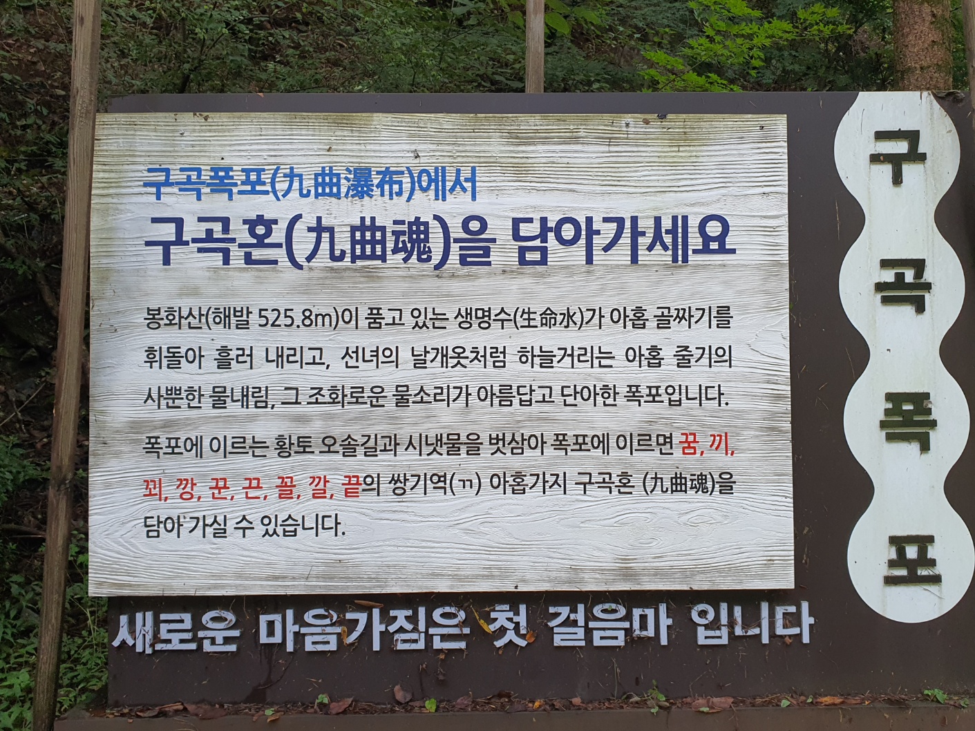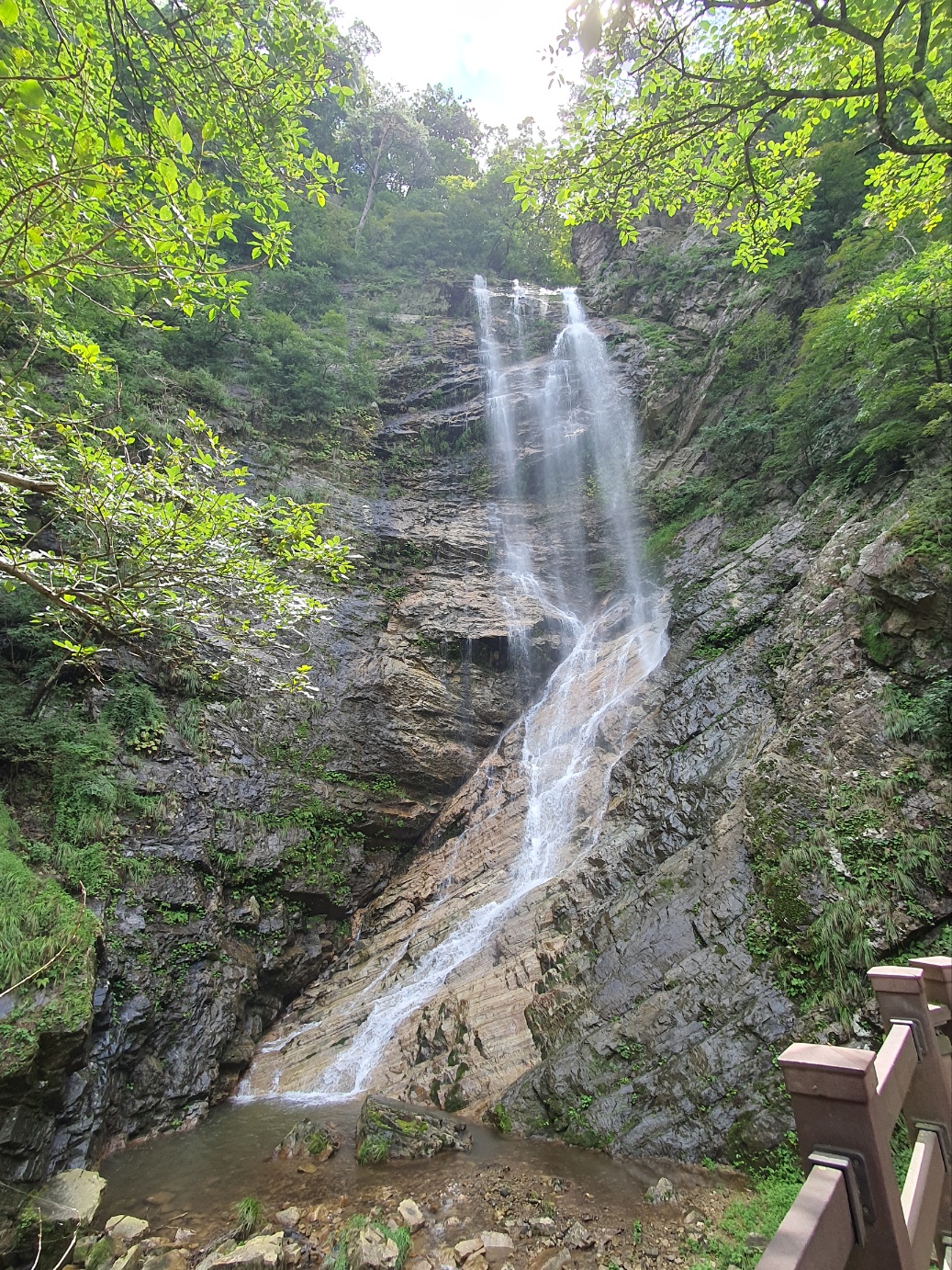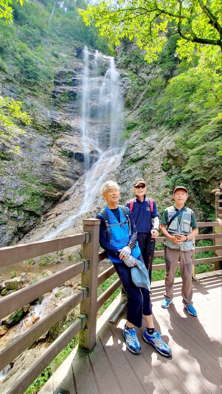 겨울에 빙벽타기로 이름 난 구곡폭포. 지난 밤 내린 비로 풍부한 수량 폭포로....