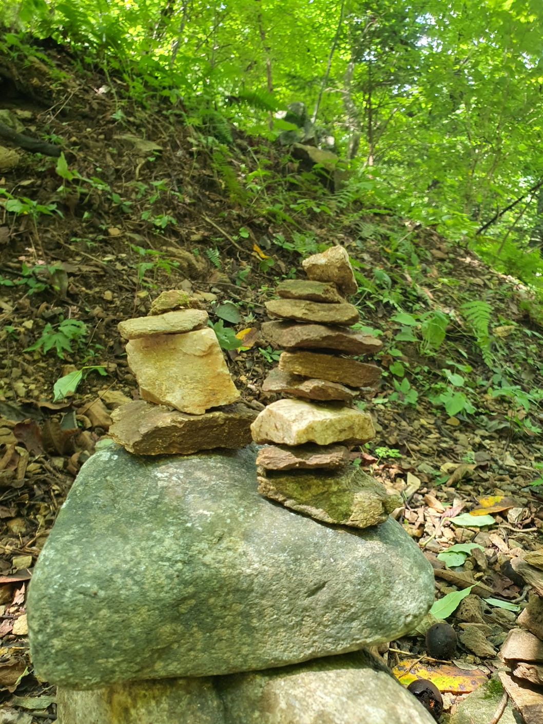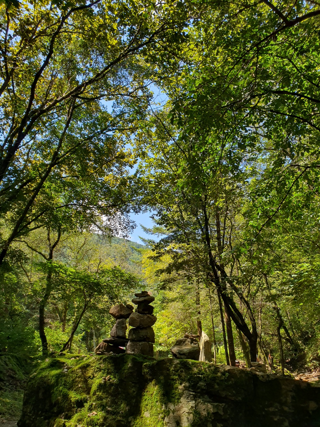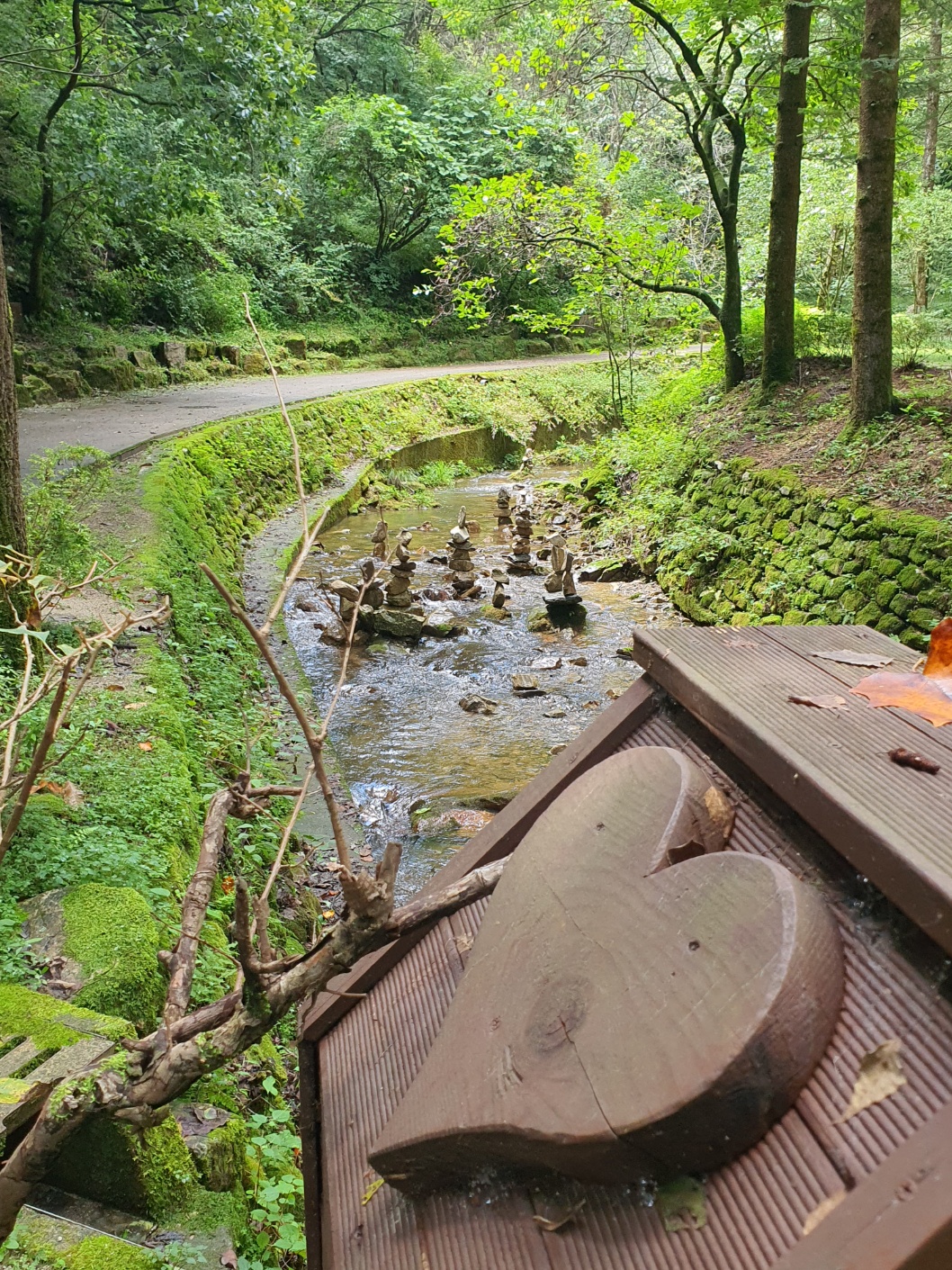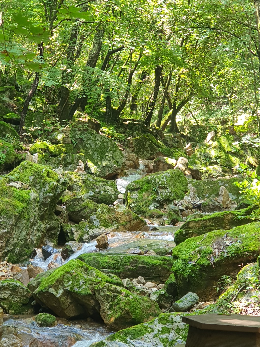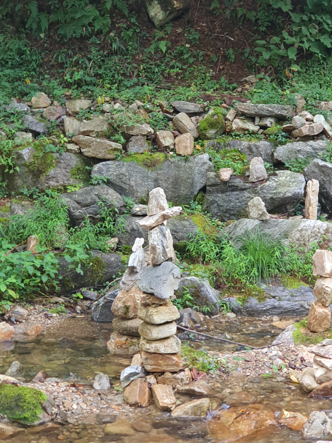 눈에 들어 오는 것, 계곡의 푸른 이끼와 수많은 돌탑 그리고 맑은 개울물....