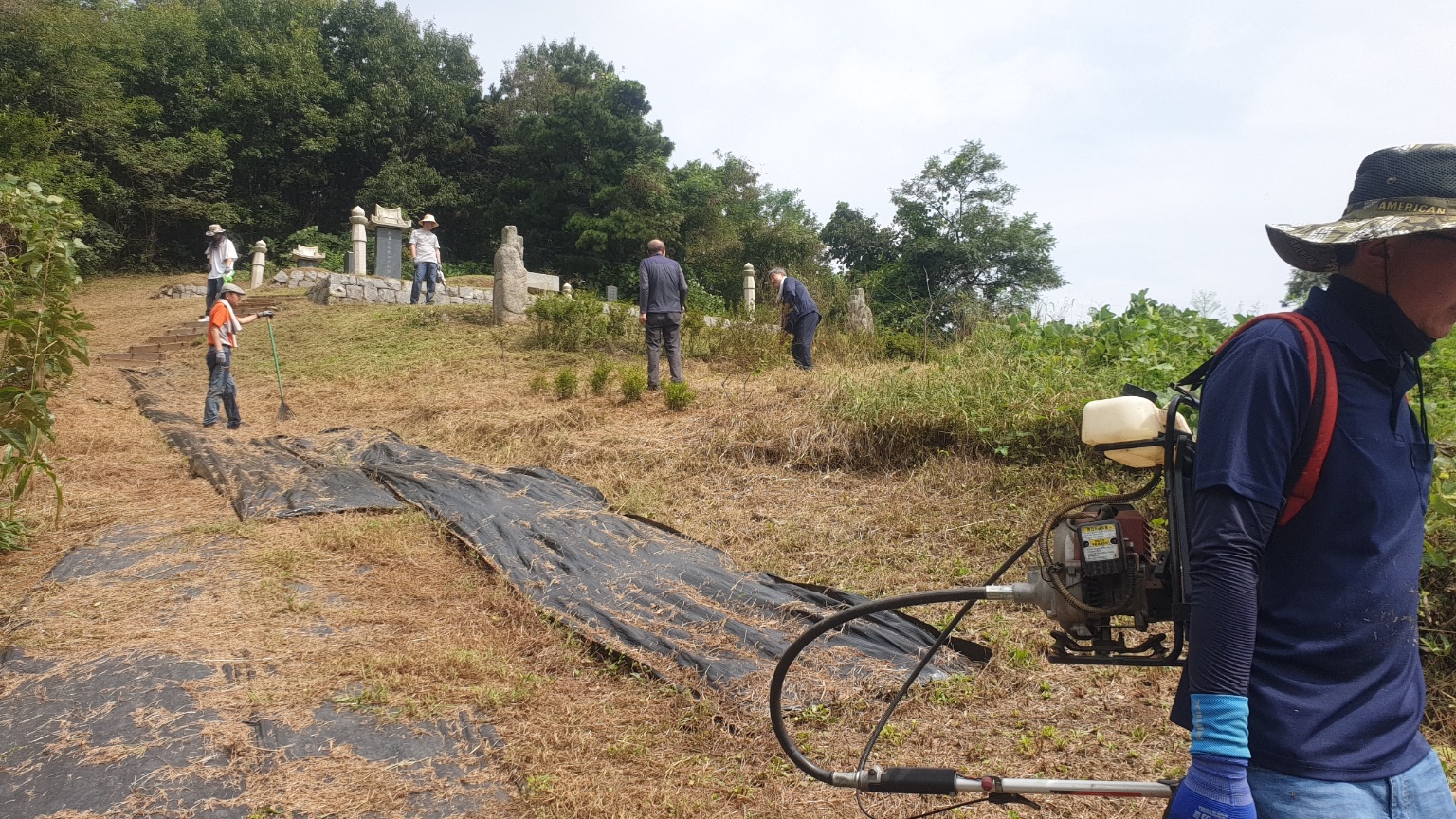 전에는 예초기에 모두 쇠칼날을 장착했는데, 이제는 나이론줄로 교체했다. 칼날예초기와 반반했으면 벌초가 더 효과적이었을텐데.... 10시반에 시작해서 12시반쯤 마무리했다. 종부께서 참으로 여러 가지 음식을 준비해 오셨다. 술과 음료수, 순대와 떡, 등등...