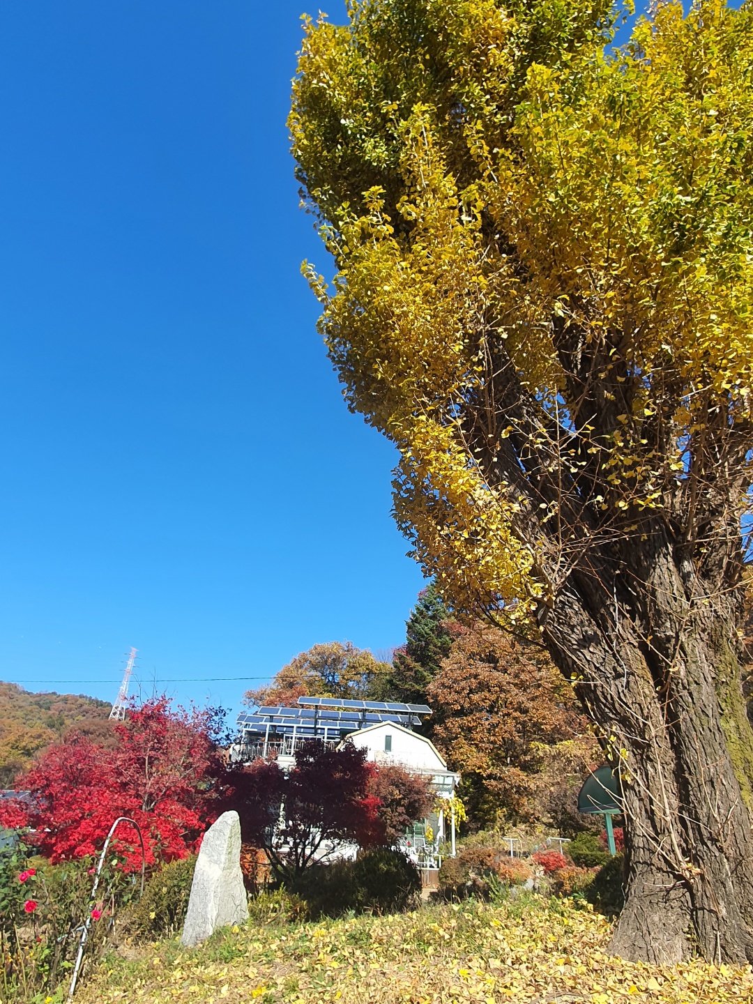 주변이 단풍으로 물들기 시작했는데, 지금이 주변 단풍나무와 수 자 열매가 빨갛게 물들었다.