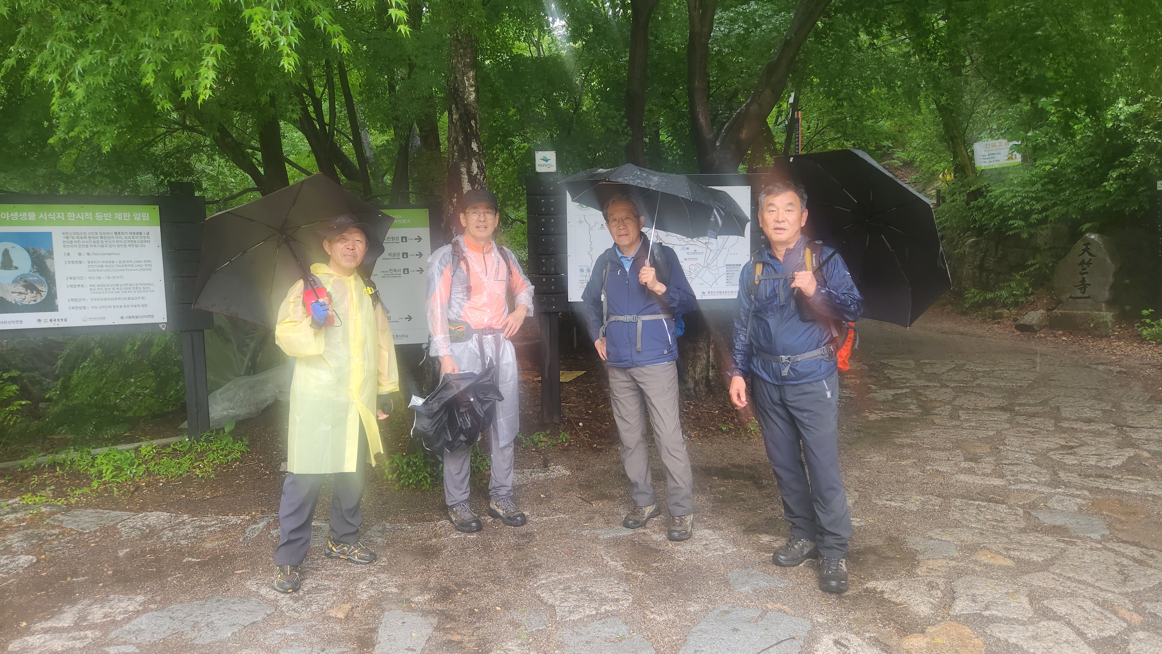 2, 3년전부터 산악회 후배들과 가끔 산행을 했었는데, 마침 토요일을 잡아 도봉산행을 하였다. 10시경 만나 만월암을 거쳐 418계곡의 418계단으로 올라 포대정상으로 올랐다. 비가 추적추적오는 관계로 온산이 온통 운무로 덮혔다. 사진이 신비스런 분위기다. 민초샘쪽에서 점심을 먹고 망월사로 내려왔다. 한 3시간반정도 걸렸다. 다들 잘 간다. 재호와 성원은 29회 인호는 30회, 윤태는 32회. 나와 같이 5명이 잘 다녀왔다. 망월사 역 근처 삼겹살집에서 거하게 하산주하고, 2차로 맥주도 한 잔 하였다. 귀한 후배들이다.
